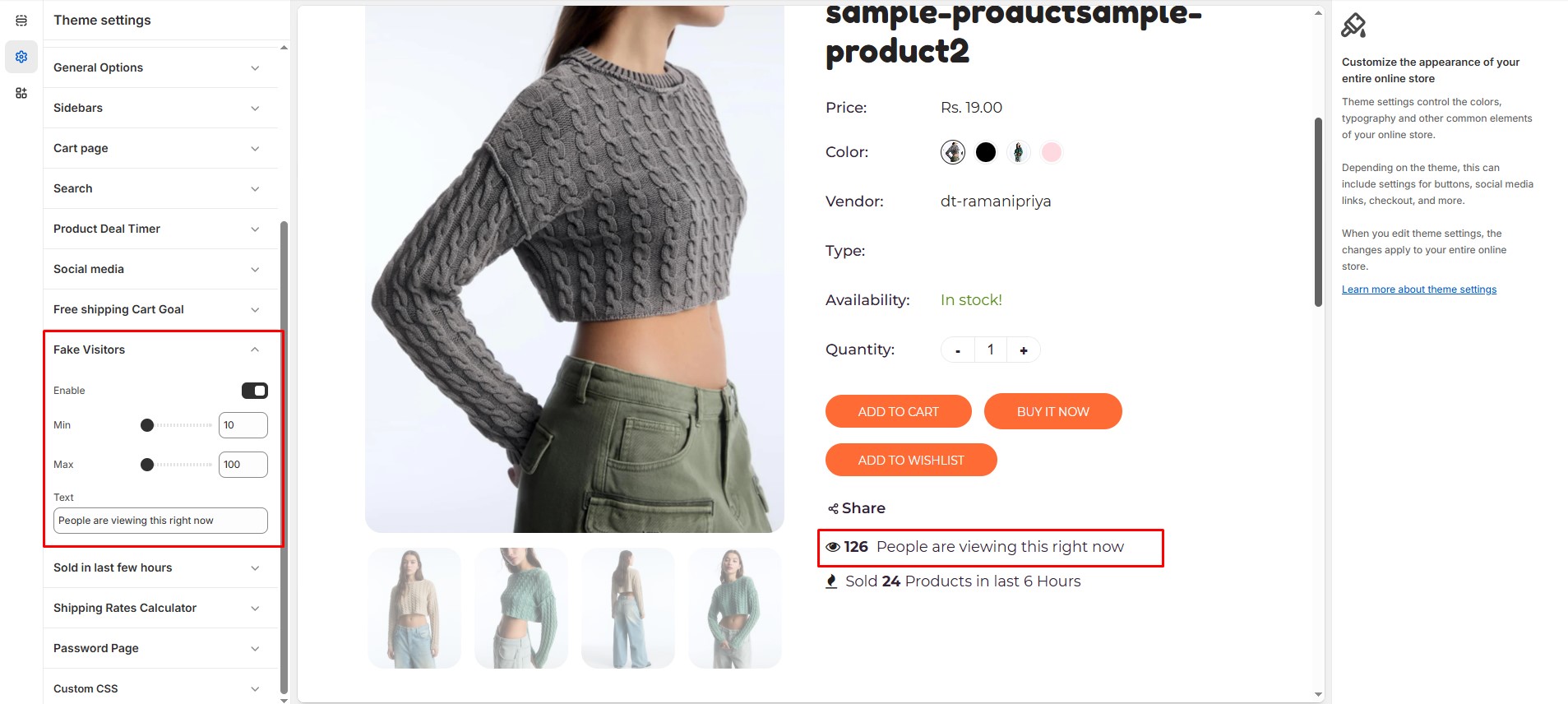 The Fake Visitors feature creates a sense of urgency by displaying the number of people currently viewing a product. This can help boost conversions by leveraging social proof.