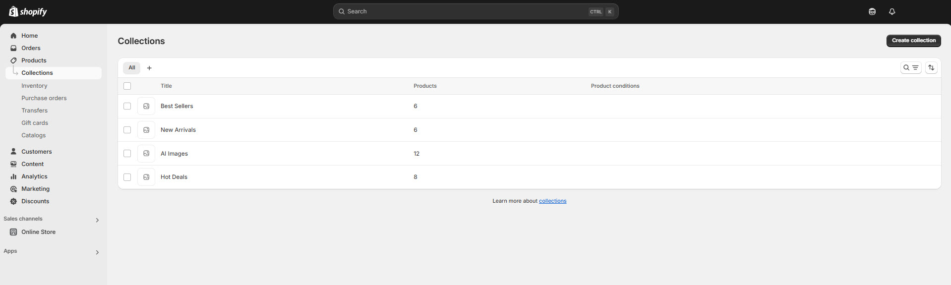 Go to Shopify Admin > Products > Collections.