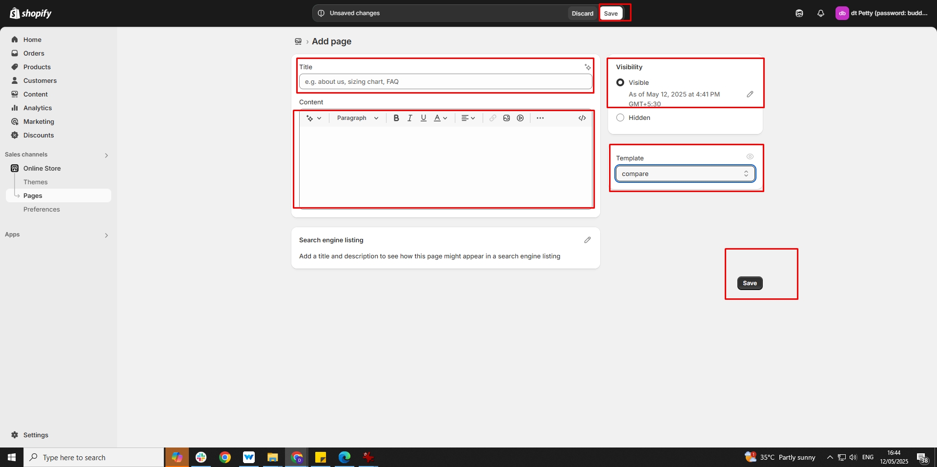 Step 4: Select Compare from the Theme template drop-down menu in the Online Store section.