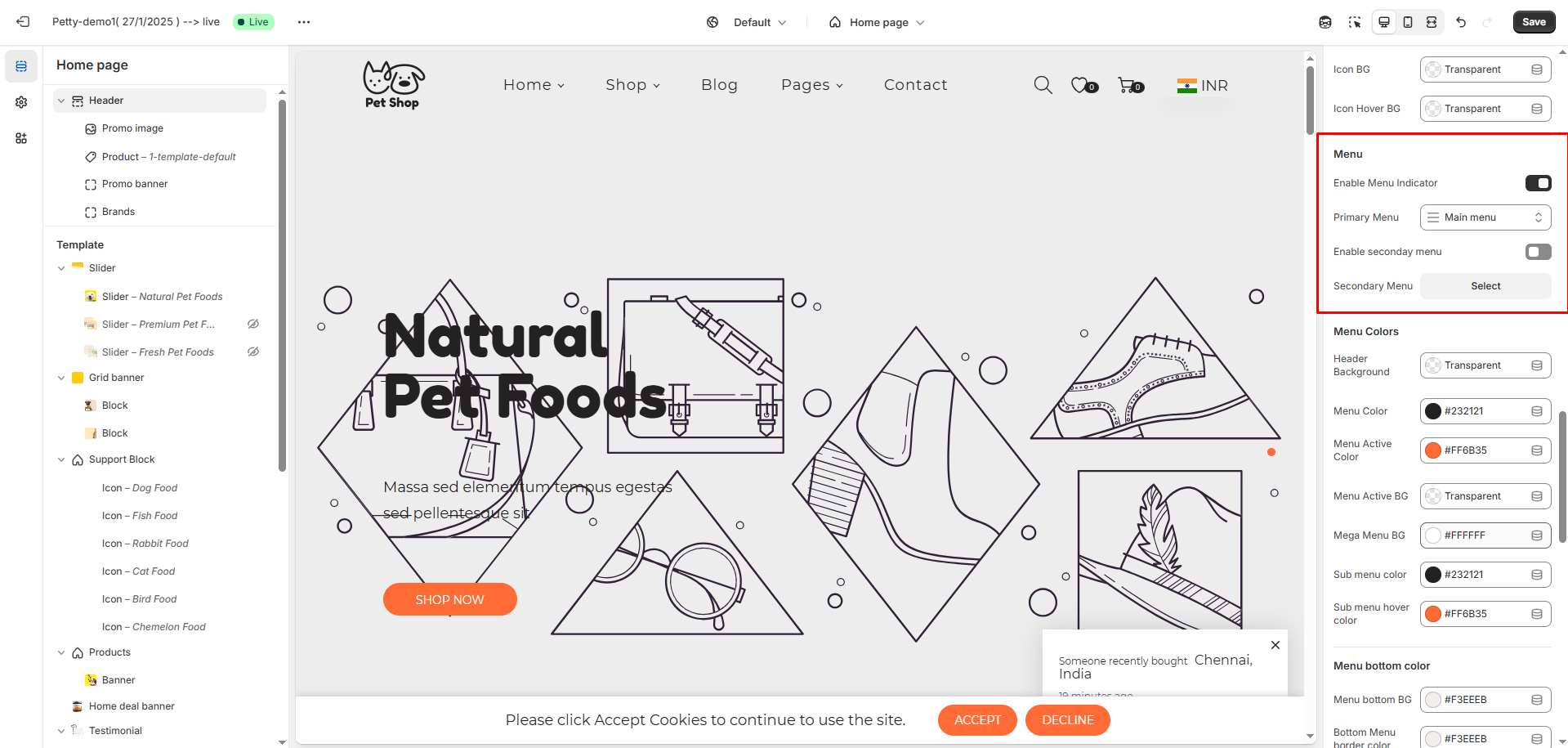 * Click **"Add Menu "** and enter a Name **(e.g., "Shop," "About Us," "Contact").**