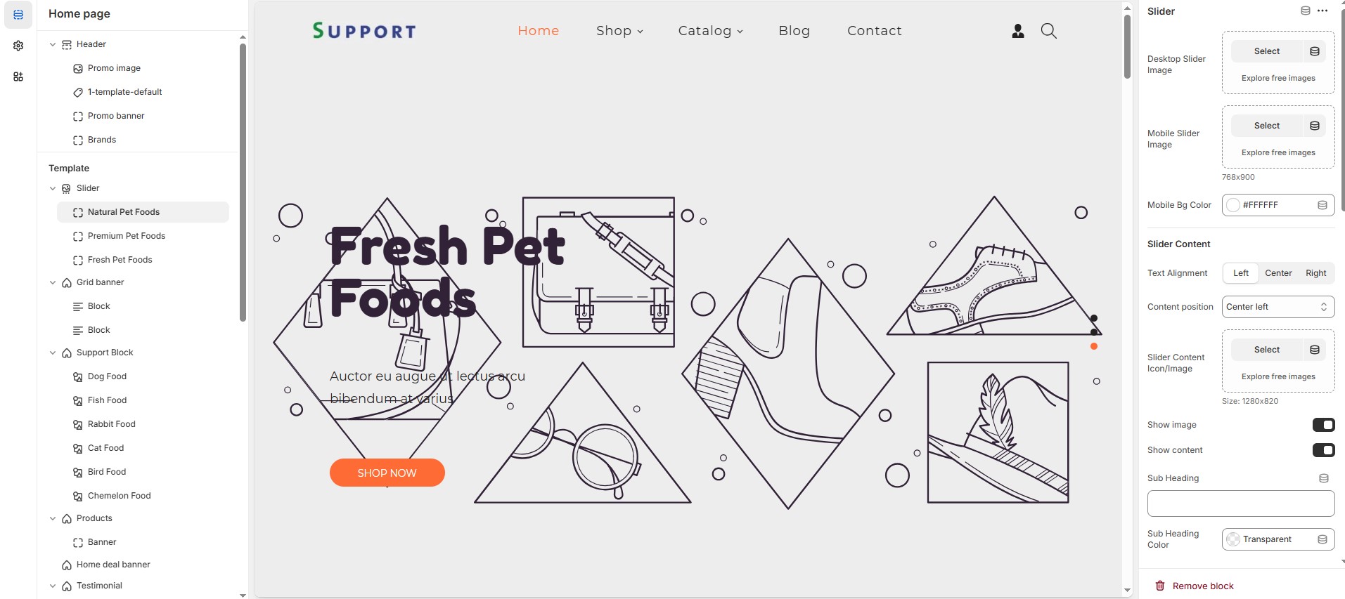 The **Slideshow Section** allows you to display multiple images or banners in a rotating format, making it ideal for highlighting promotions, featured products, or key brand messages.