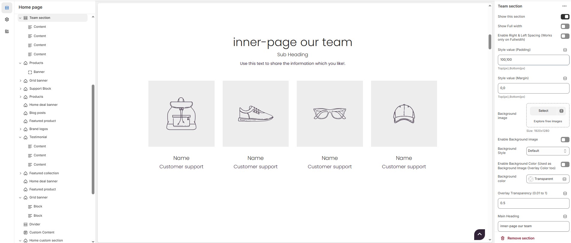 Team Section Settings & Customization Options