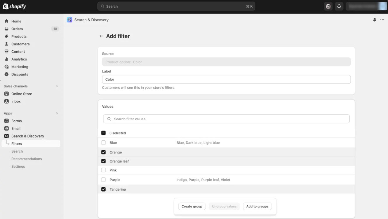 Access the App: Once installed, go to your Shopify Admin. Navigate to Apps > Search & Discovery to start using it. By adding required filter and its visible on the Product grid page.